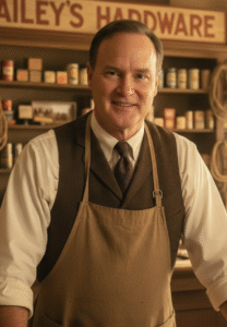 Talkative, God-fearing hardware and lumber man who loves his late wife, his store, and the reckless “son” he sees in Monte.
